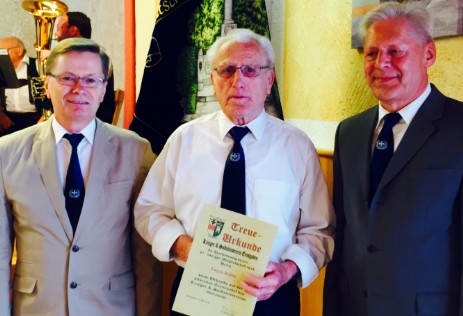 Den traditionellen Jahrtag beging am 22.05.16 der Krieger- und Soldatenverein Ernsgaden. Mit einem Gedenkgottesdienst, gestaltet von Pfarrer James Matthew, wurde der Gefallenen und Vermißten der beiden Weltkriege und aller verstorbenen Mitglieder gedacht. Danach erfolgte die Kranzniederlegung am Kriegerdenkmal. Beim anschließenden gemeinsamen Mittagessen im Gasthof Riedmeier wurde Eugen Robin für seine 40-jährige Vereinszugehörigkeit geehrt.