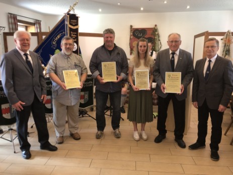 v.  li. 1.Vors. Günther Thaller, Harald Lux (10 J.), Martin Gary (10 J.),  Sabine Schmelzer (10 J.), Hans Halbritter (40 J.). 2.Vors. Alois  Schmelzer